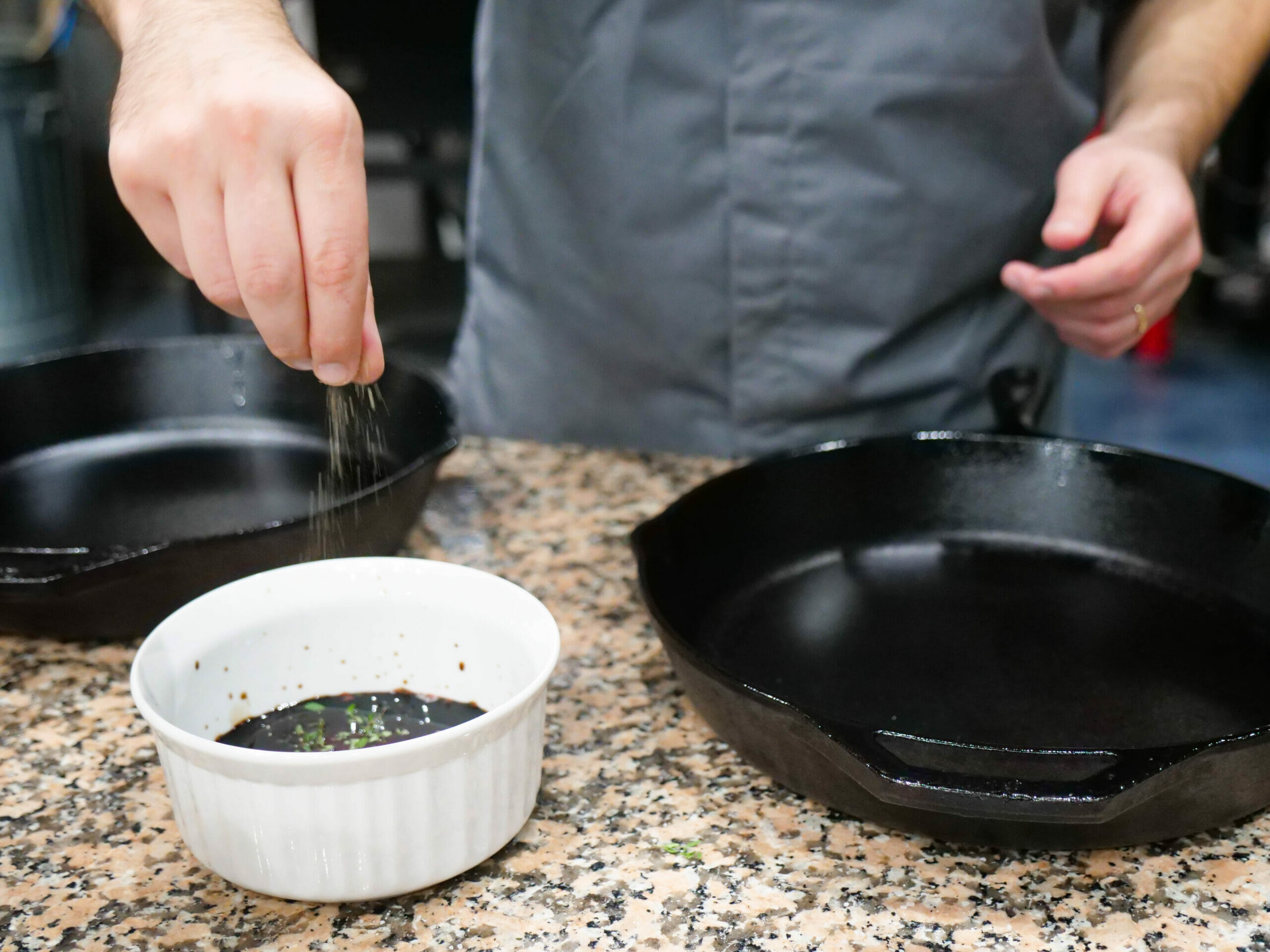 1. Preheat convection oven to 550°F and preheat a cast-iron skillet.
