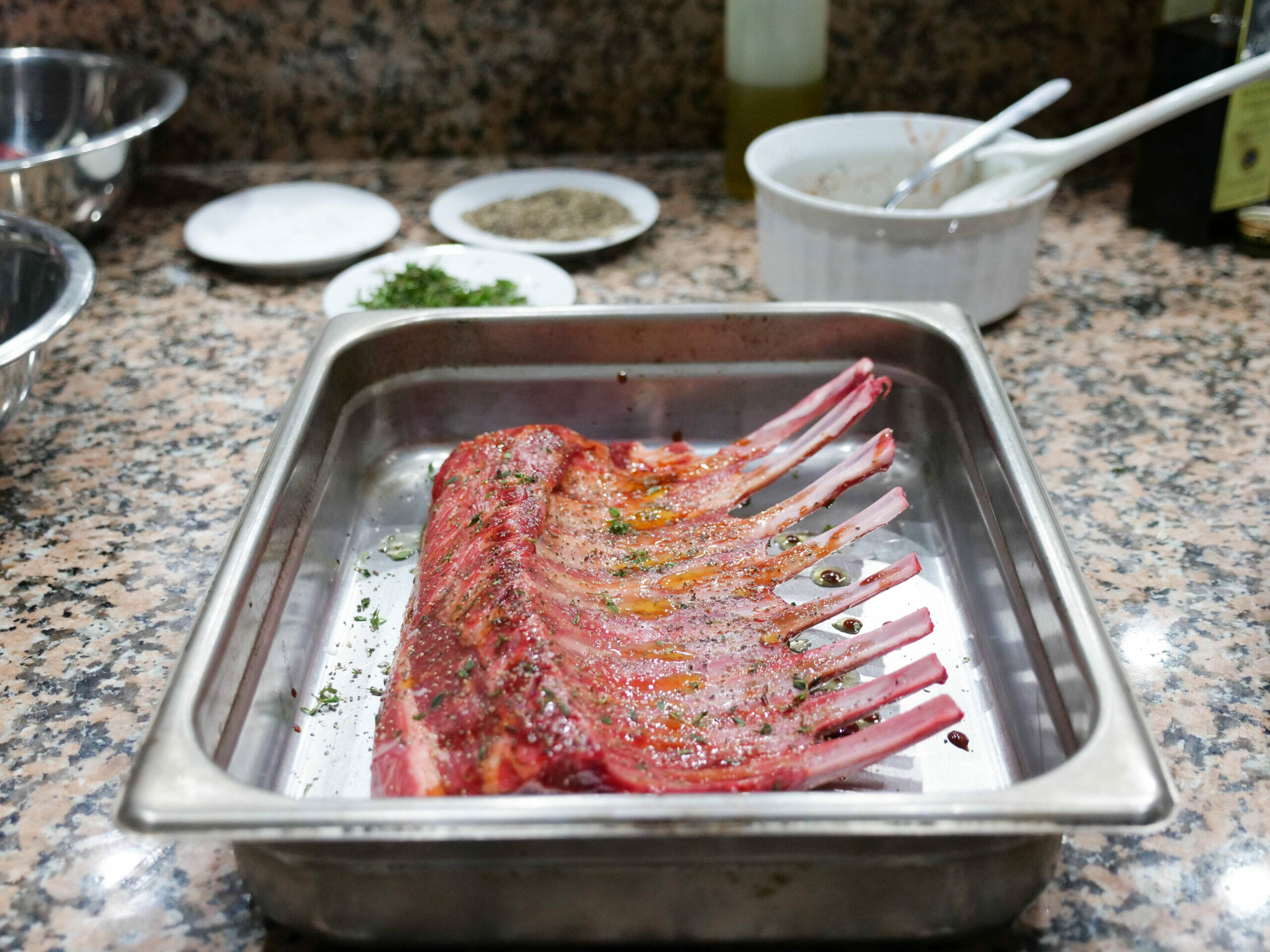 - 1 rack Lamb, split and trimmed